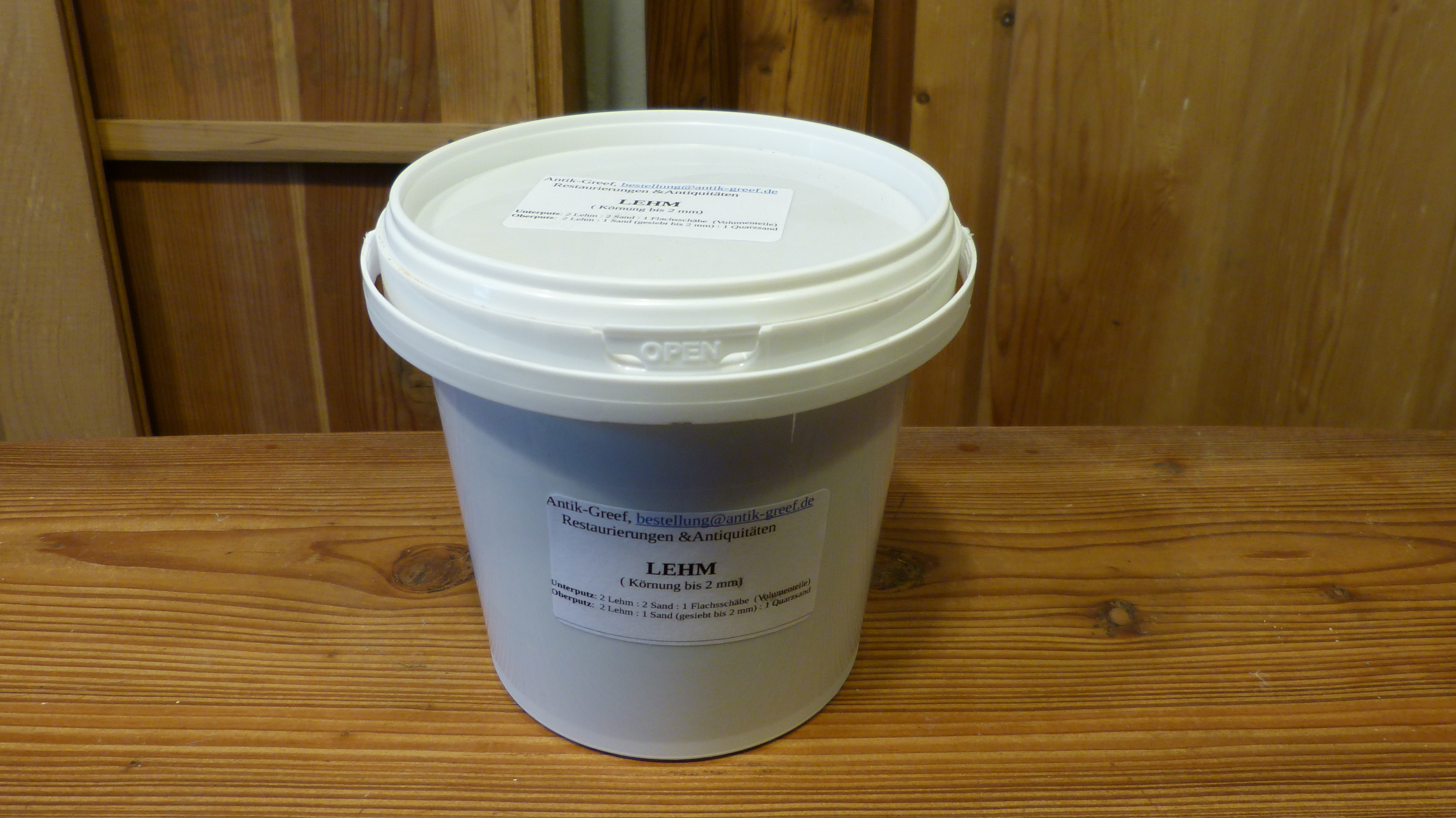 Beschreibung: Lehm, gesiebt bis 2mm, 1l-Gefäß, ca. 1100 Gr.